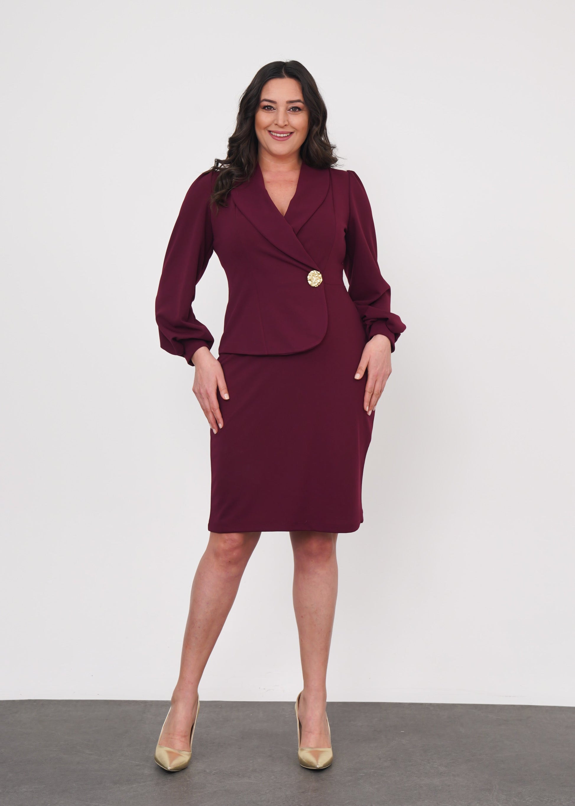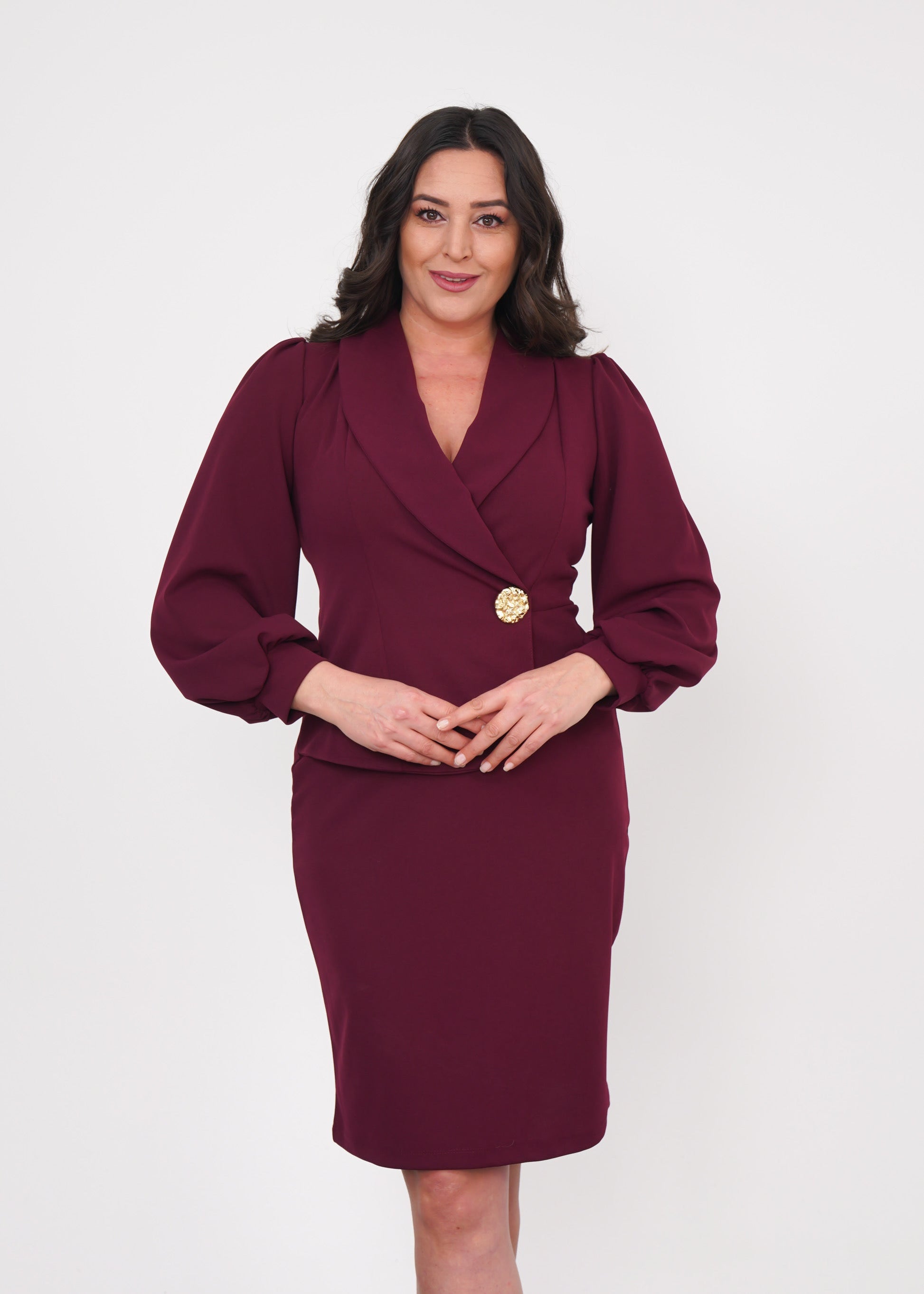 Gold Broşlu Gömlek Yaka Abiye Elbise