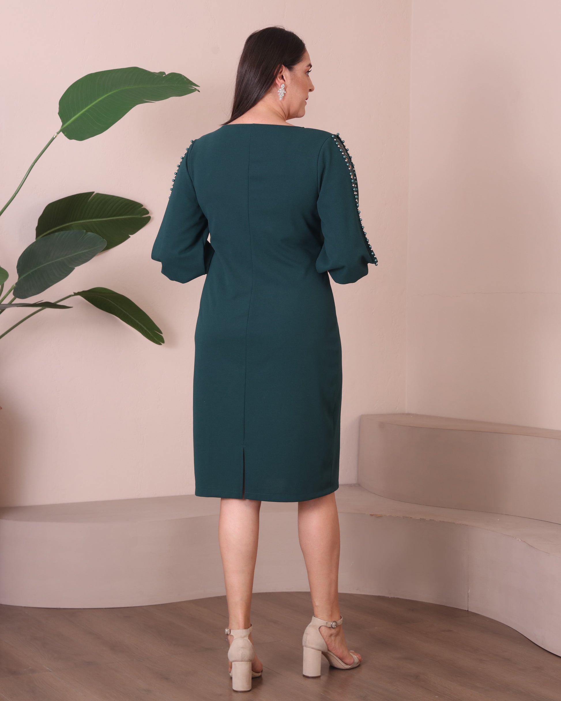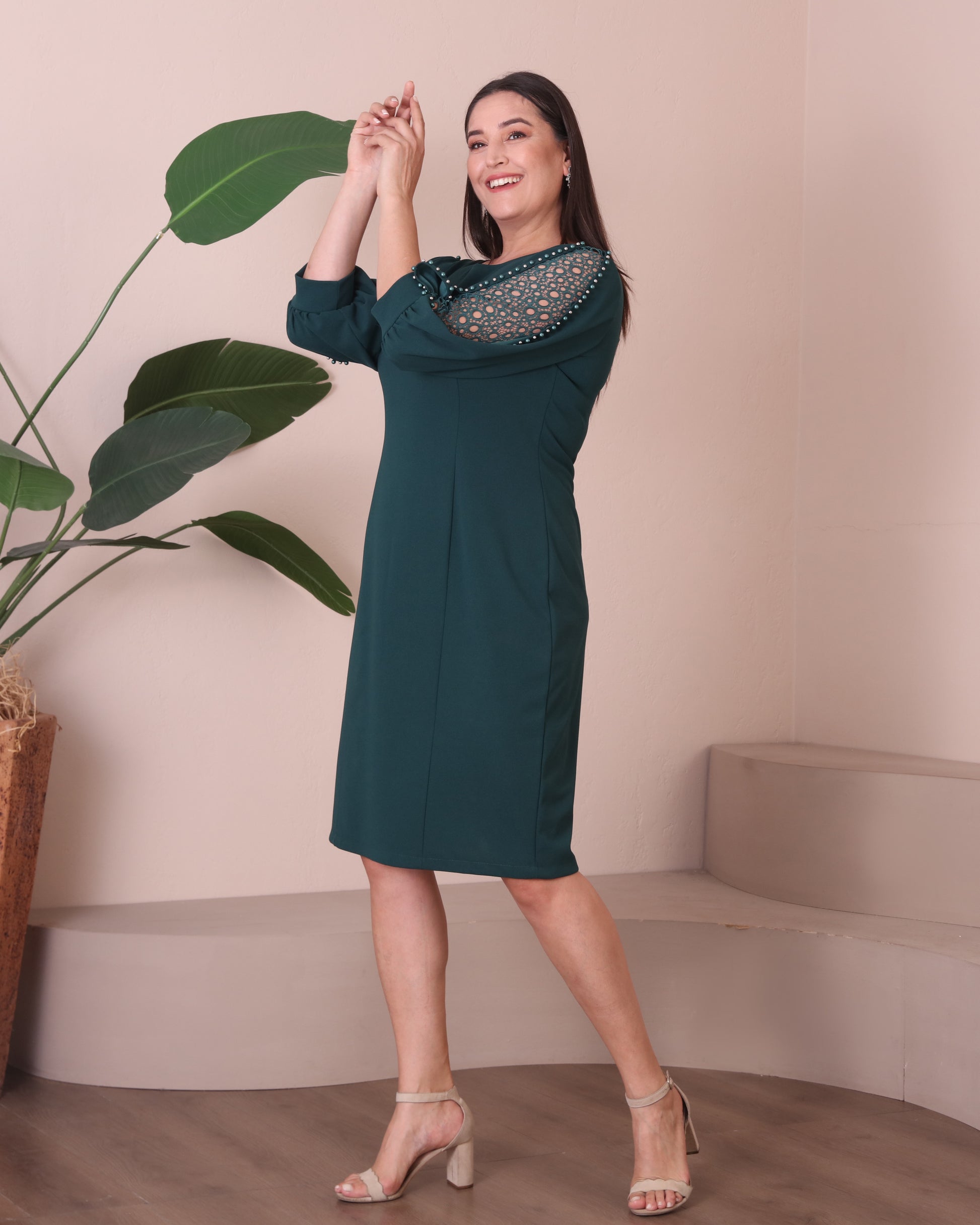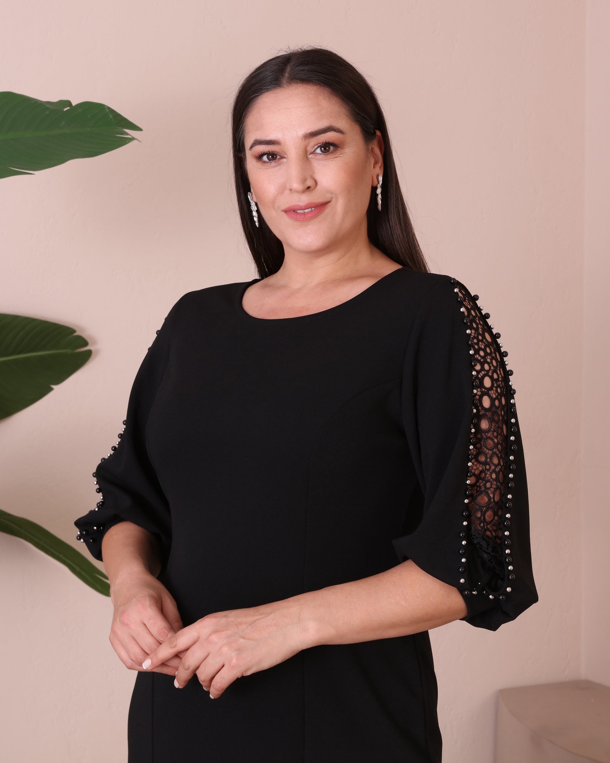 Kolu Boncuklu Dantel Detaylı Abiye Elbise