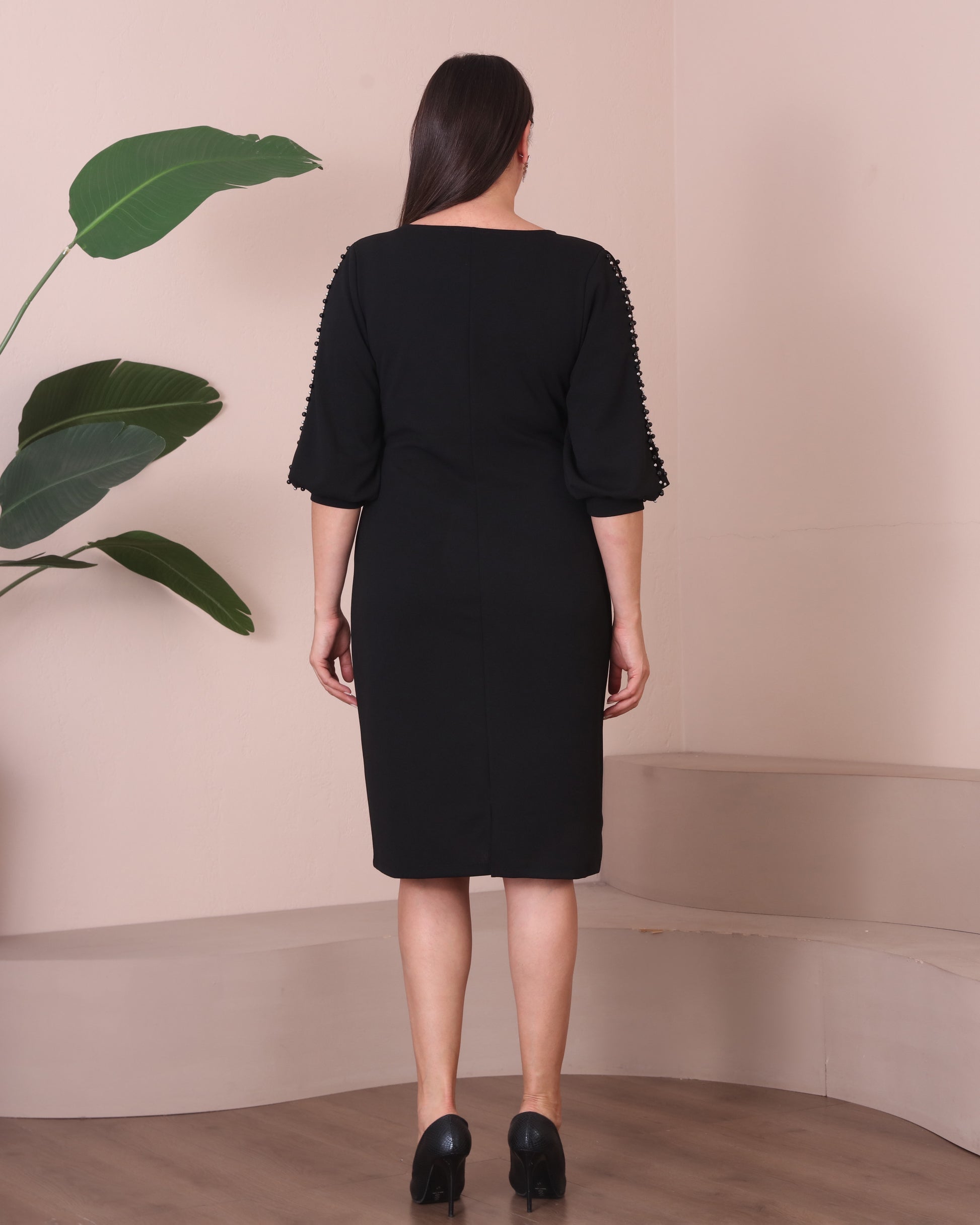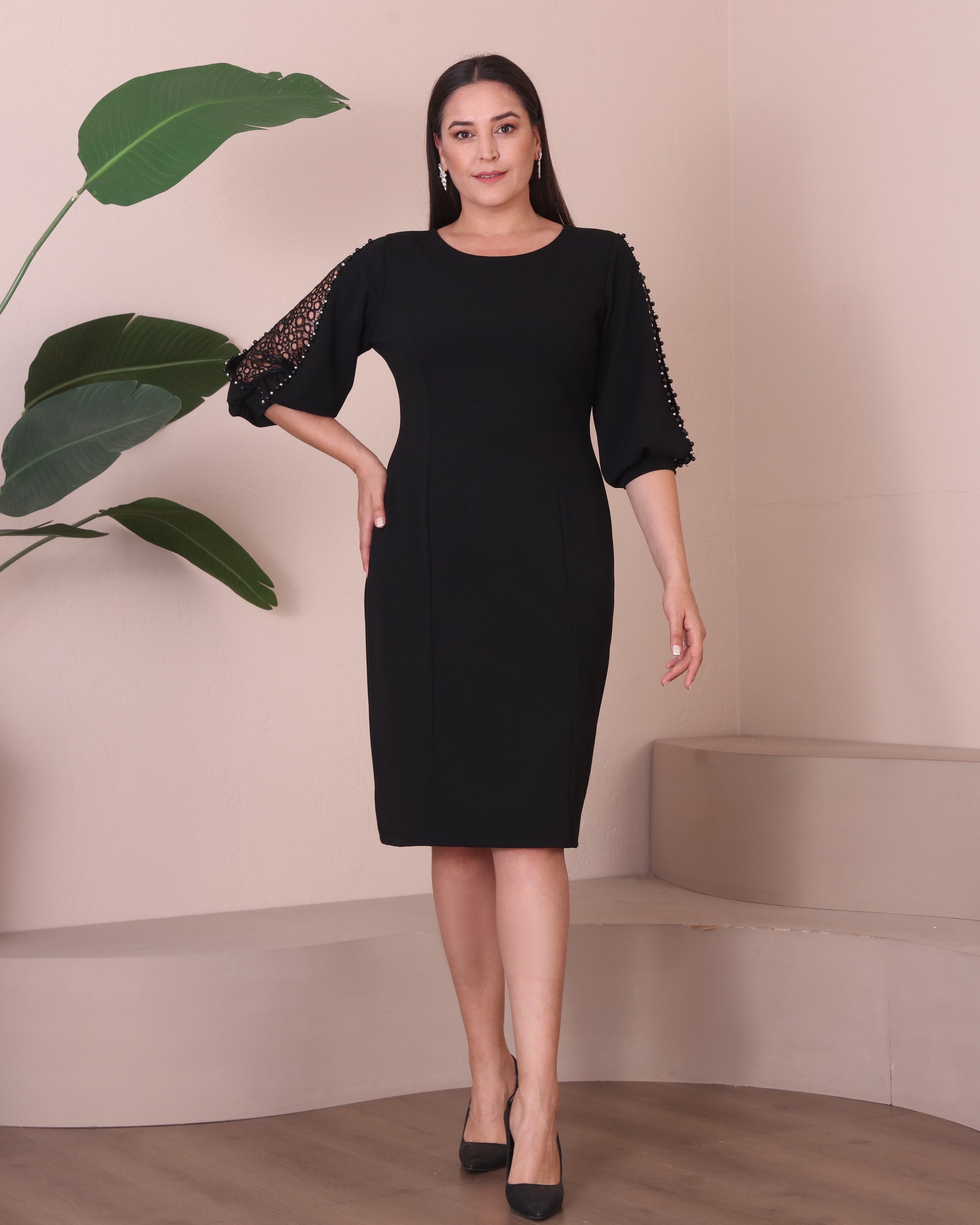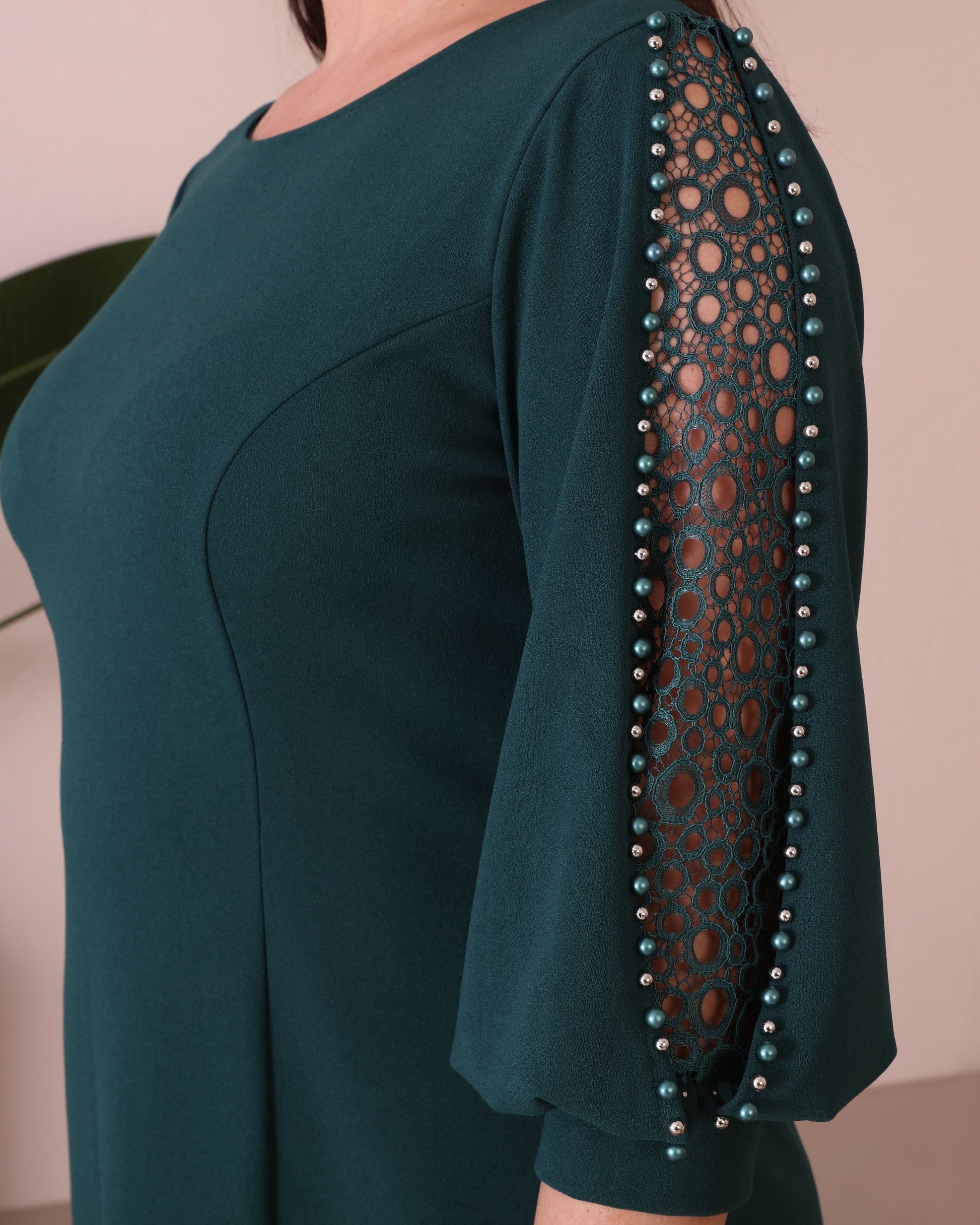 Kolu Boncuklu Dantel Detaylı Abiye Elbise