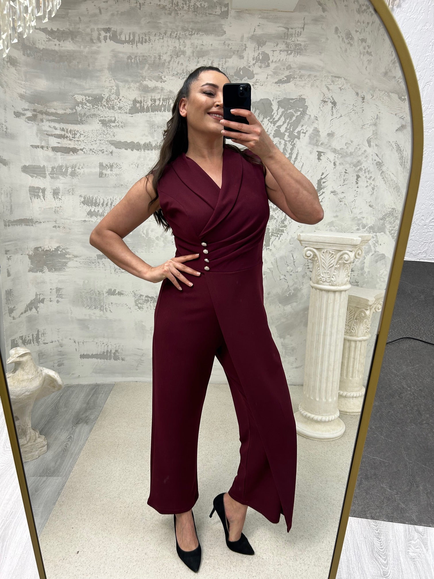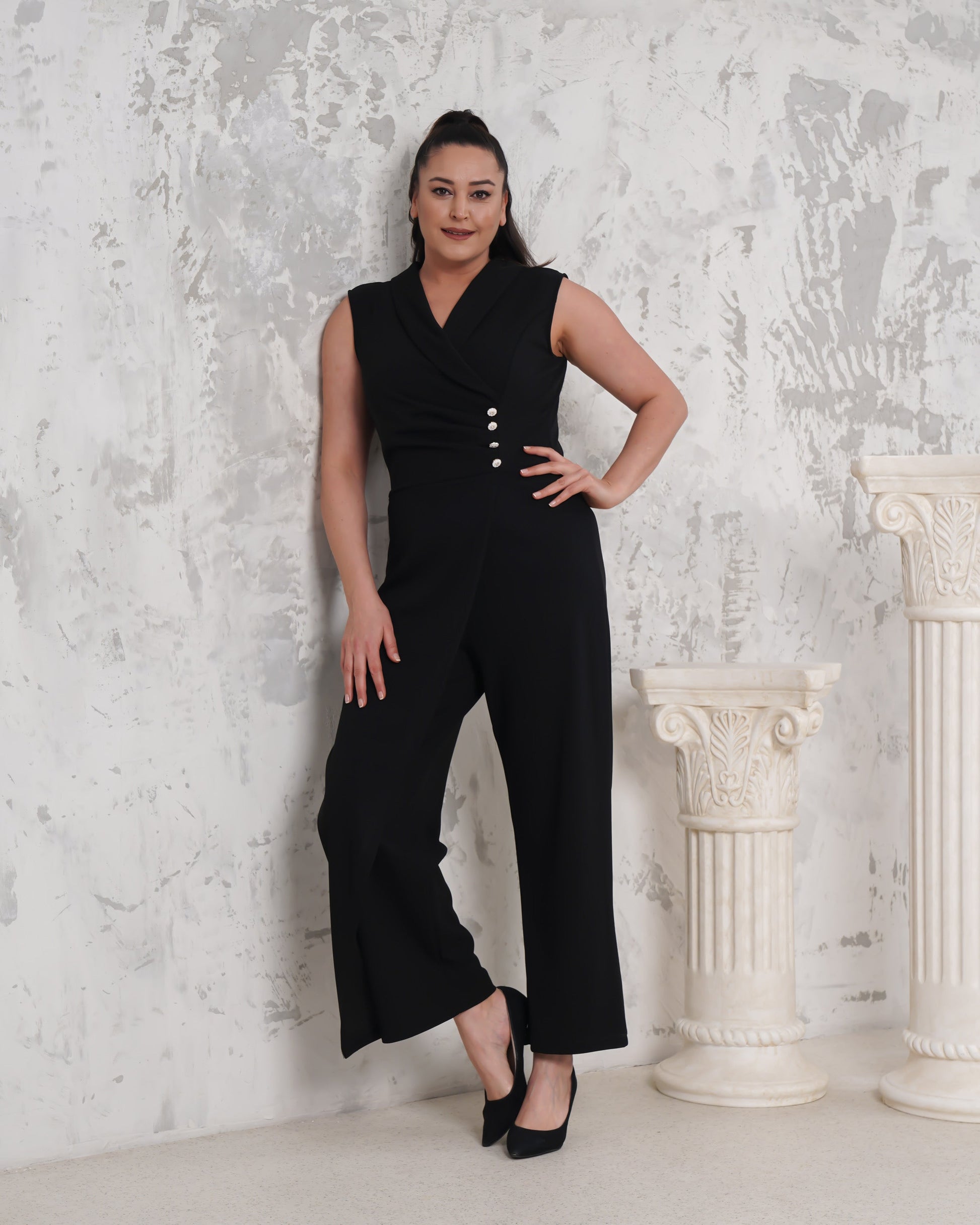 Sıfır Kol Düğme Detayı Tulum