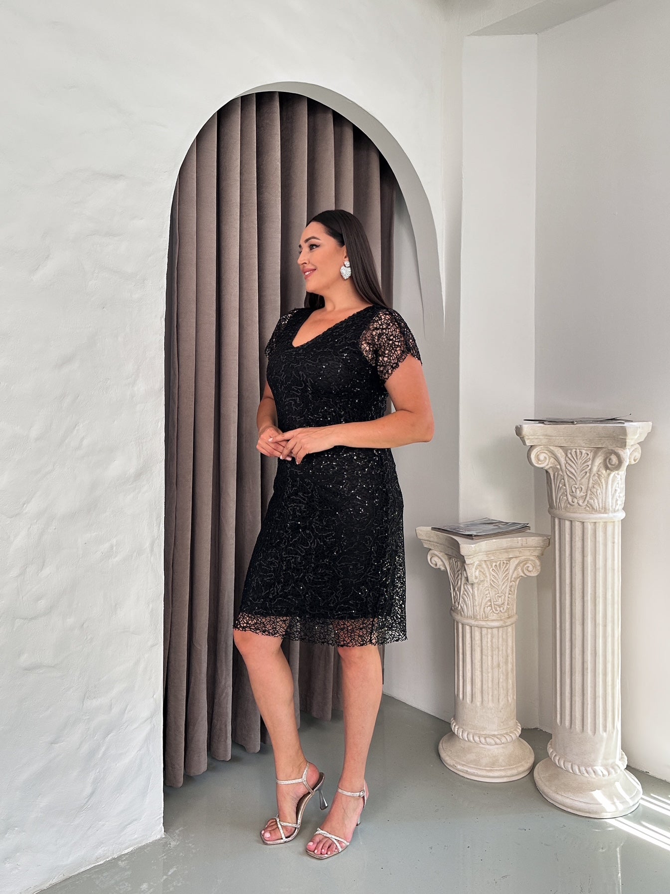 Yarım Kol Örümcek Payetli Abiye
